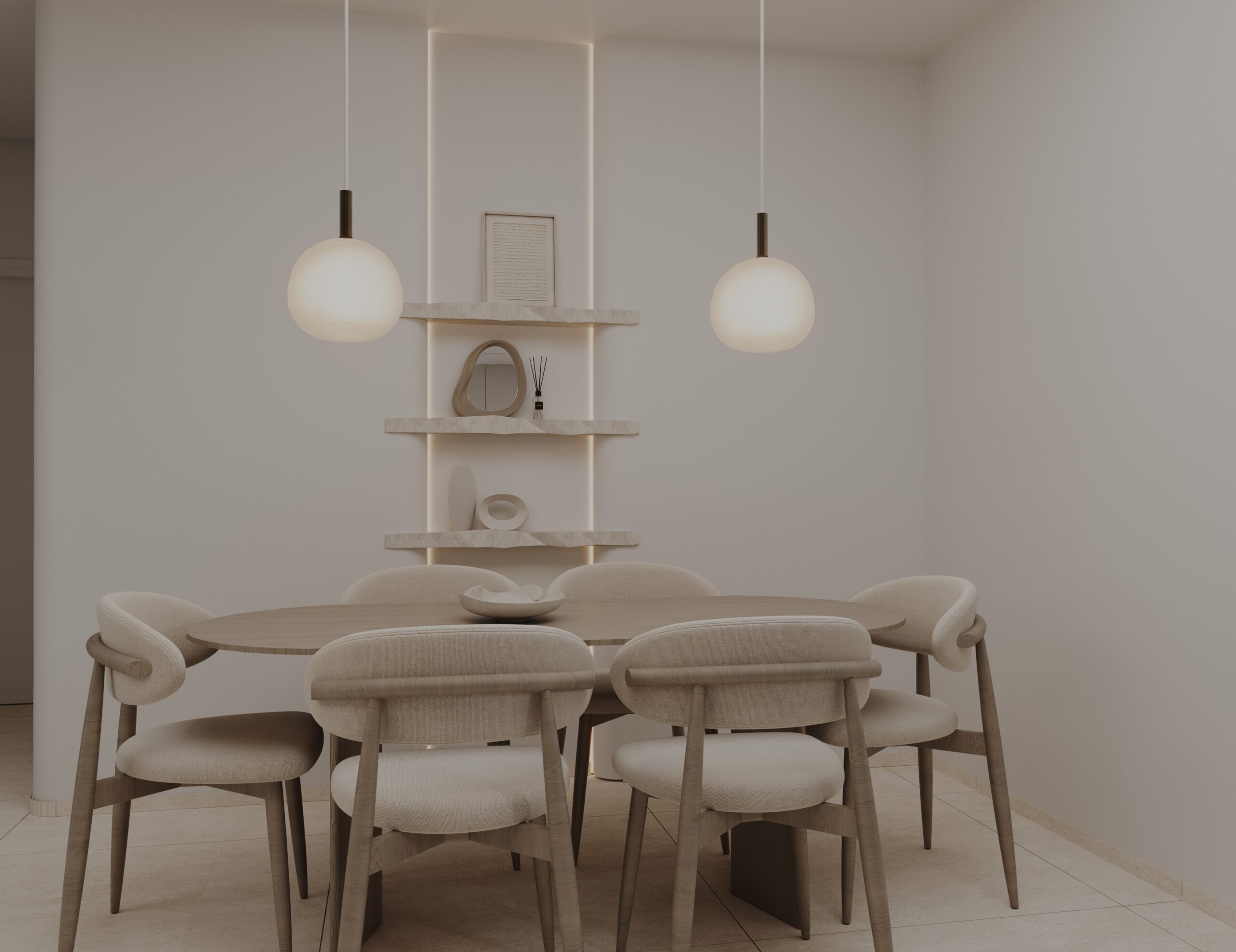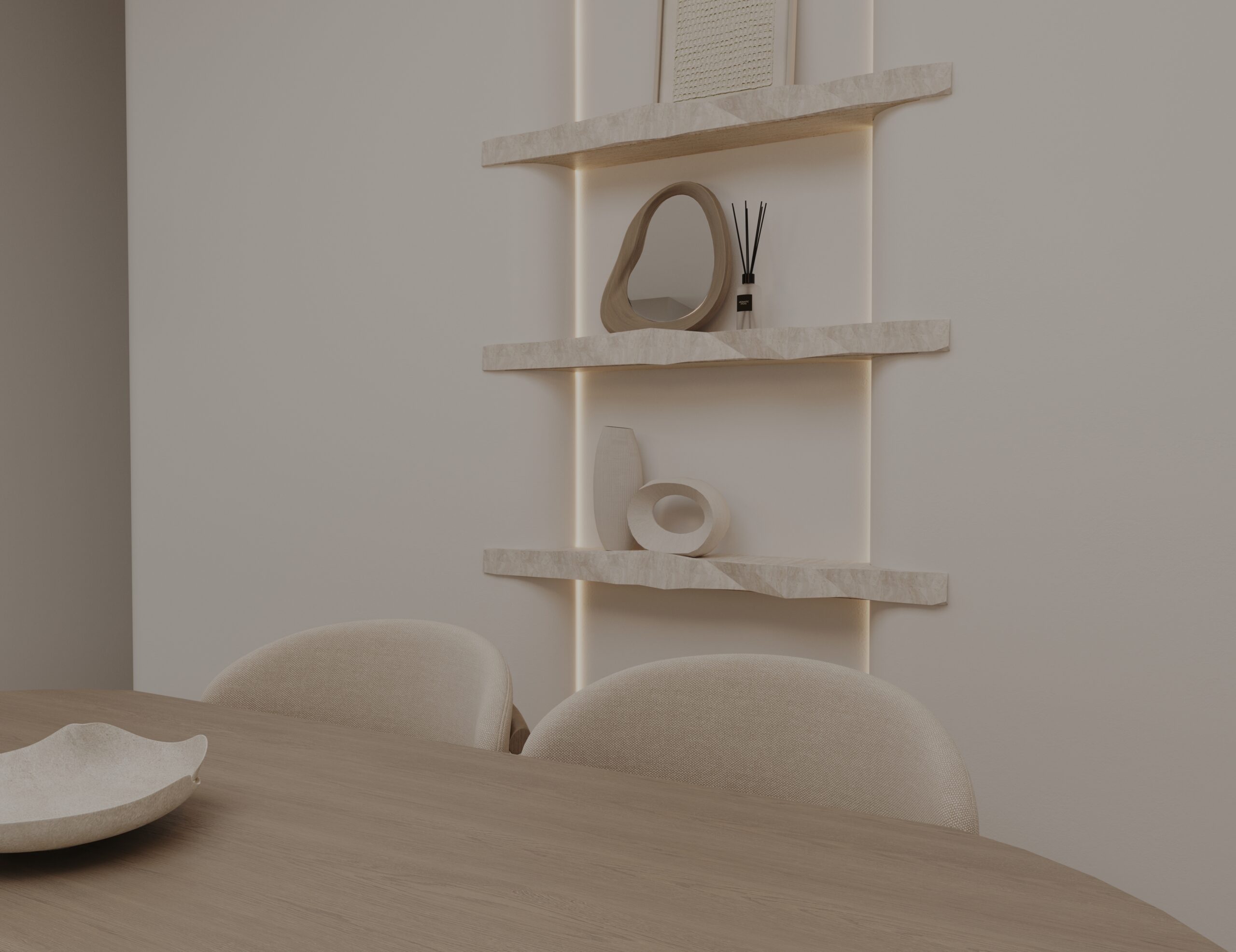 קיר גבס מעוגל עם נישה למדפים , הכולל בתוכו תאורה נסתרת