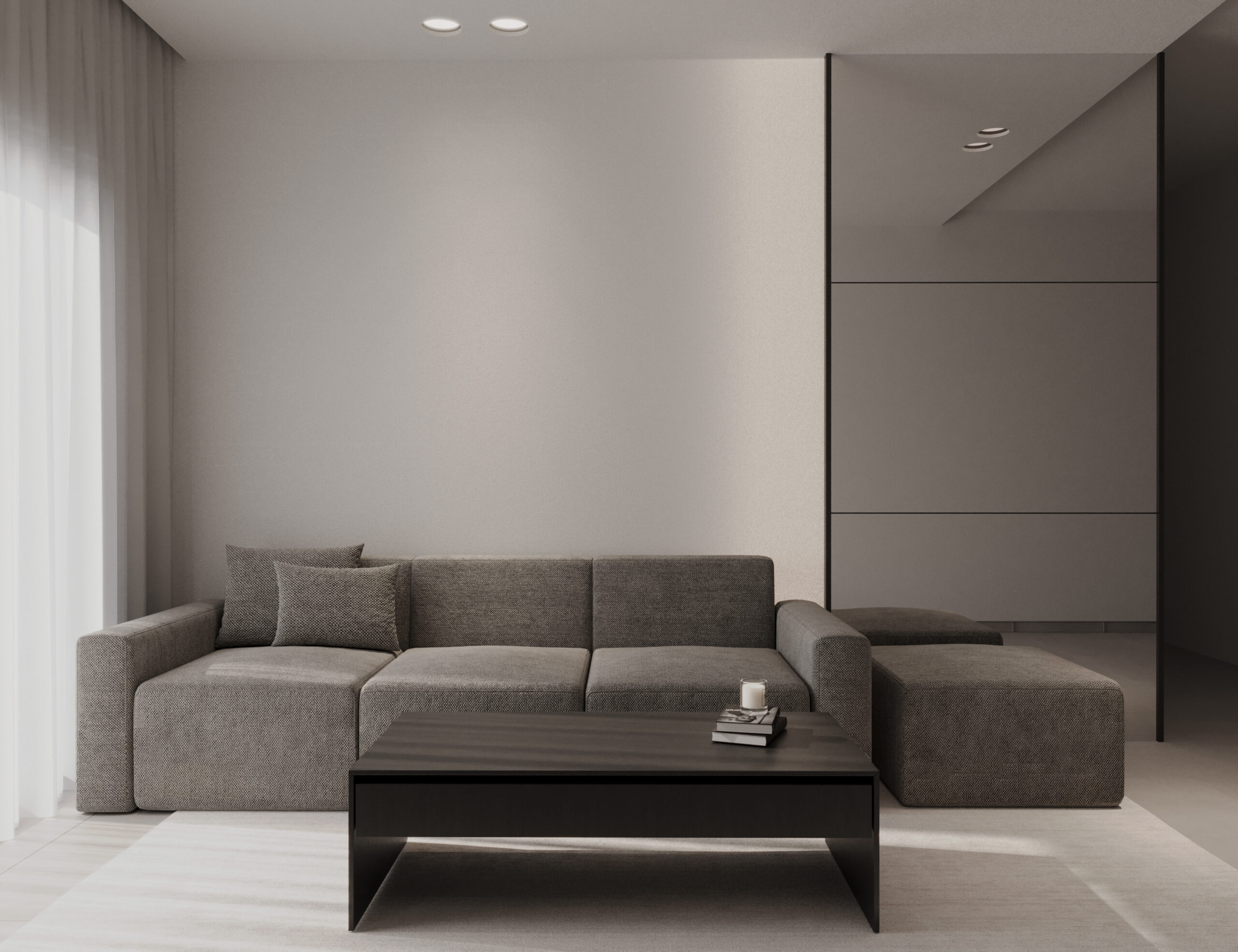 • ספה תלת מושבית בד רחיץ בגוון אפור בהיר